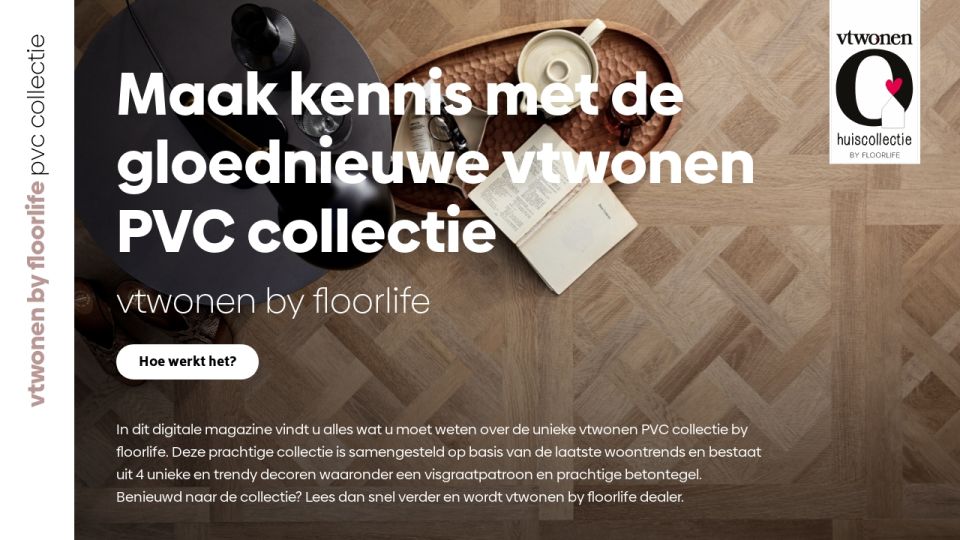 In dit digitale magazine vindt u alles wat u moet weten over de unieke vtwonen PVC collectie by floorlife. Deze prachtige collectie is samengesteld op basis van de laatste woontrends en bestaat uit 4 unieke en trendy decoren waaronder een visgraatpatroon en prachtige betontegel. Benieuwd naar de collectie? Lees dan snel verder en wordt vtwonen by floorlife dealer.